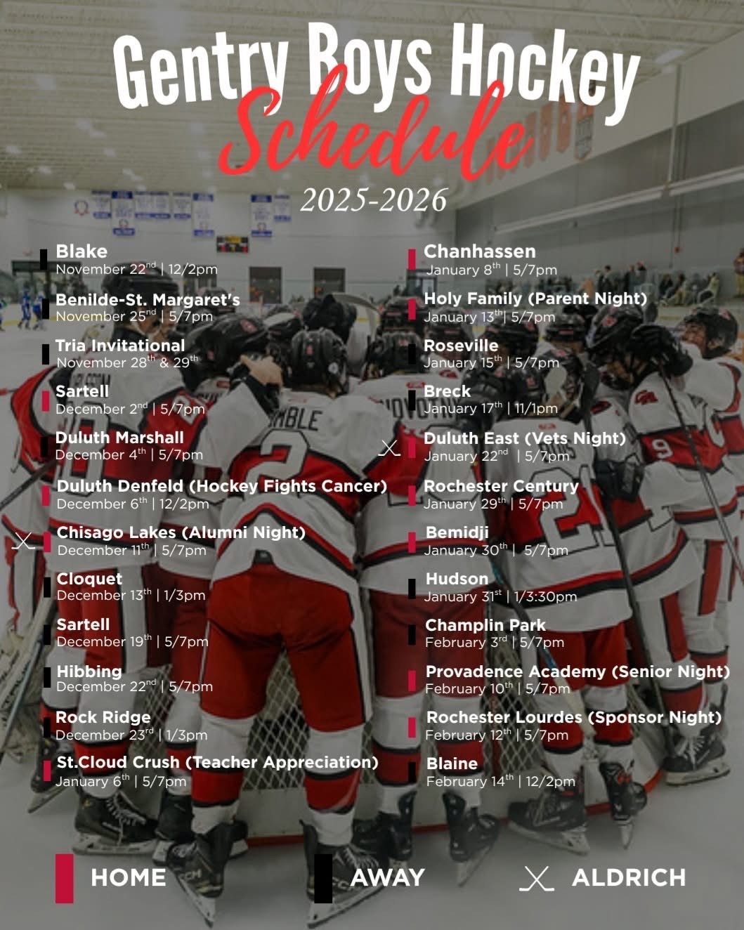 The Gentry Stars boys hockey team was formed during the 2018/2019 school year. The boys team won the MSHSL State Tournament in class A in 2021. The Stars now compete in class AA in section 4. Boys hockey includes 9th-12th grade students.