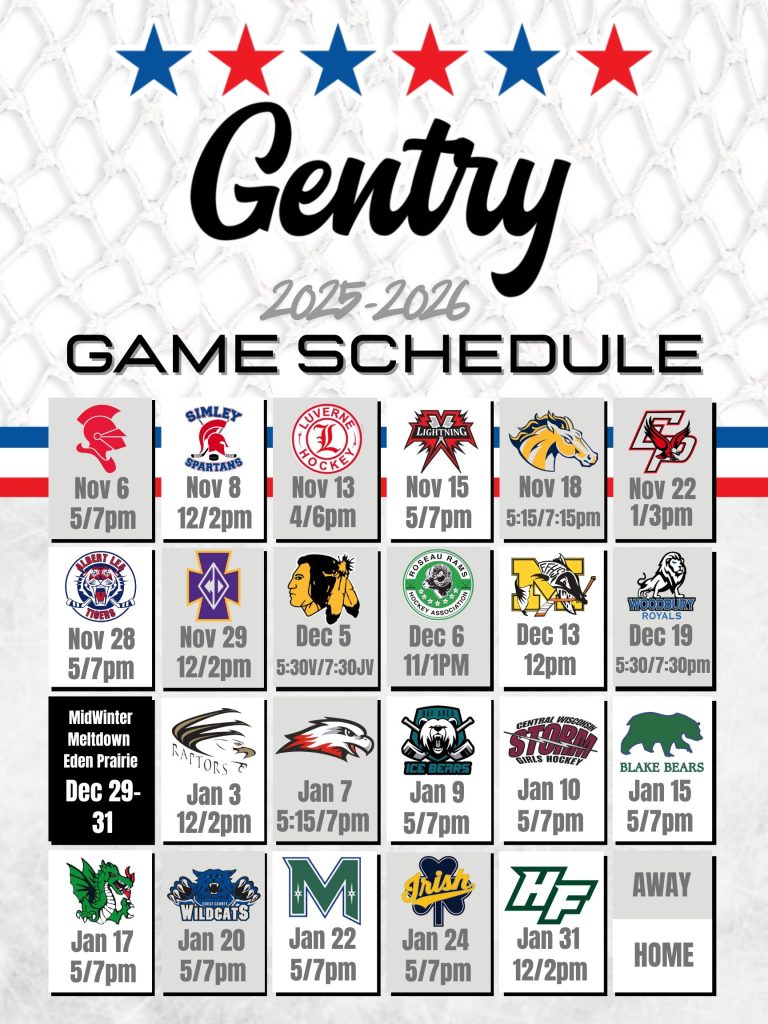 2025-26 Gentry Stars Girls Hockey Schedule